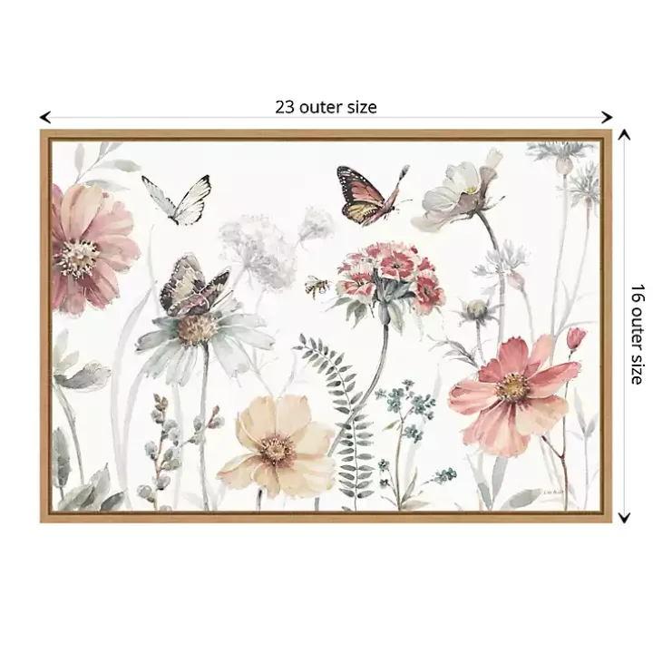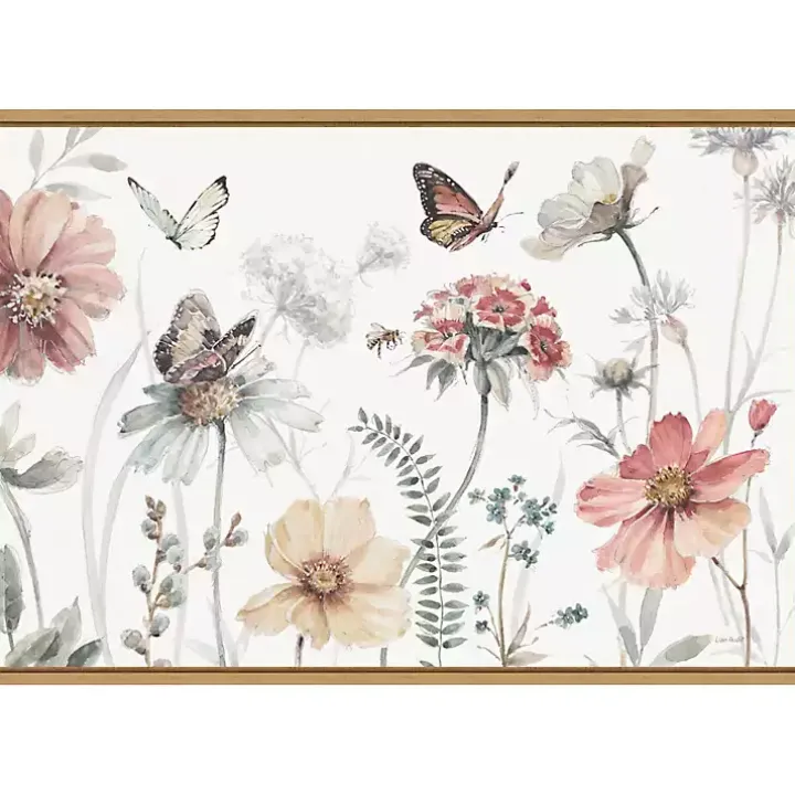 Refresh your walls for the springtime with this A Country Weekend I Framed Canvas Art Print! Showcasing watercolor wildflowers and fluttering butterflies, it’s sure to make a calming presence in your home.