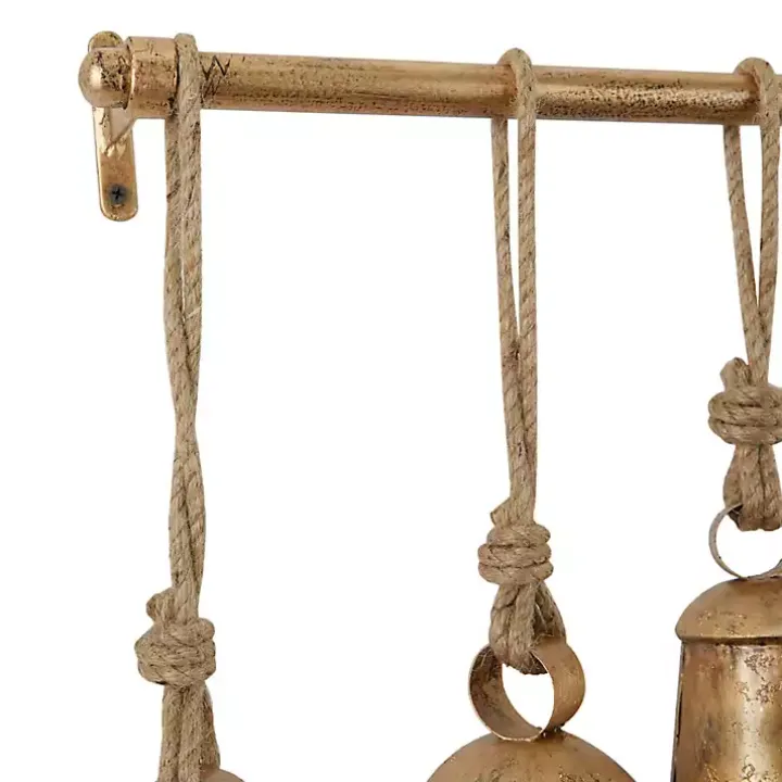Ring in the vintage charm with this Aged Gold Triangle Bells Wall Plaque! Accented with jute rope and wooden clappers, this collection of bells is perfect for creating your own in-home sanctuary.