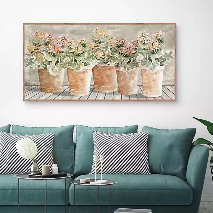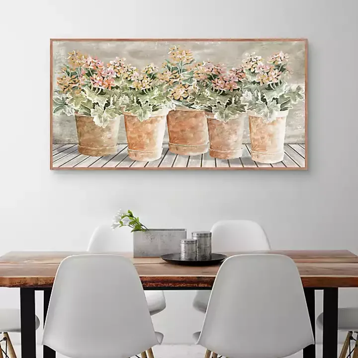 Florals breathe new life into a space! The soft, lovely hues of this All in a Row Framed Canvas Art Print will bring a refreshing essence to your home!