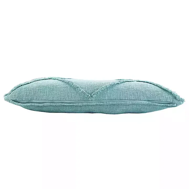 Soften up your sofa, bed, or accent chair with this Aqua Fringe Diamond Lumbar Pillow. Layer it into your pillow collection for a refreshing pop of texture and color!