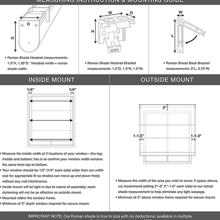 - Head rail measures 33L x 1.13W x 2.5H in.