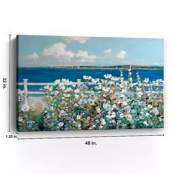Freshen up your space with blooming flowers and an ocean view! The Bayside Garden Canvas Art Print captures the natural, free-spirited charm of the coast.