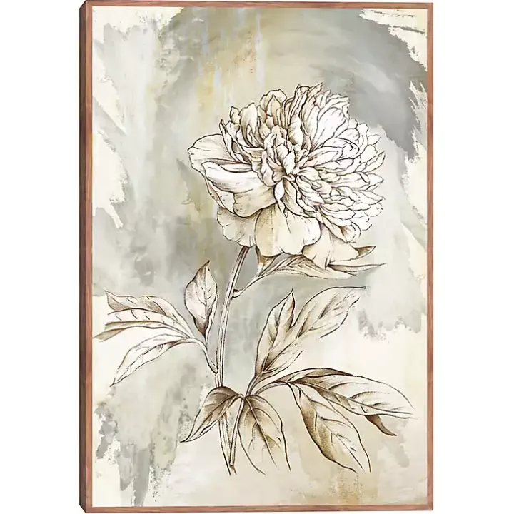 The Beauty Within Framed Canvas Art Print showcases a detailed illustration of a peony blooming from an abstract background. While it makes a stunning statement, the neutral hues will easily blend with your decor.