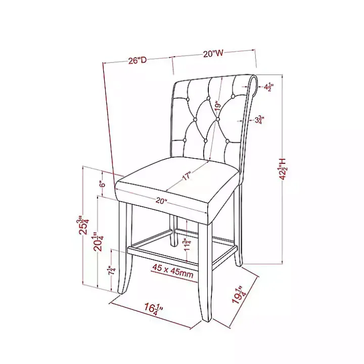 - Each stool measures 20W x 26D x 42.25H in.; seat height: 25.8 in.