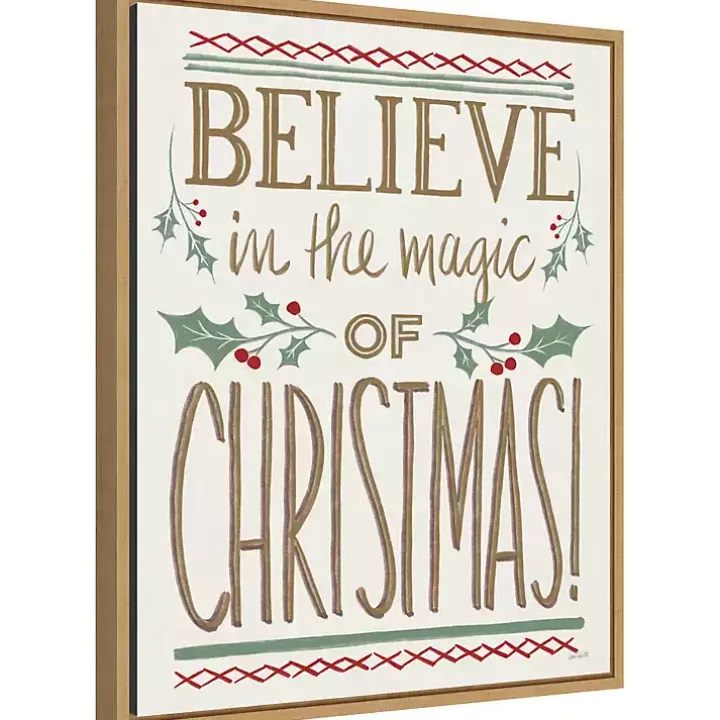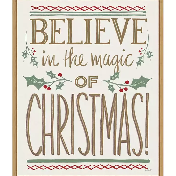 Spread the holiday spirit with this Believe in the Magic Christmas Canvas Wall Plaque! Its holly branch designs and warm, golden tones will charm all your holiday guests.