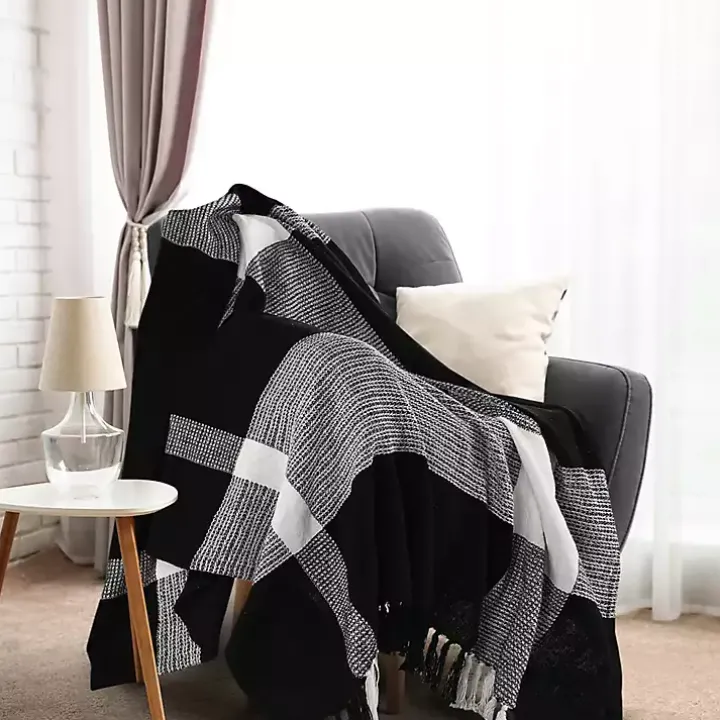 The Black and White Plaid Organic Cotton Throw features a comfortable, woven construction that’s perfect for year round use. The two-tone tassels add rich texture to any seat!
