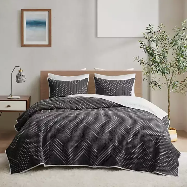 Black Chevron Full/Queen 3-pc. Coverlet Set