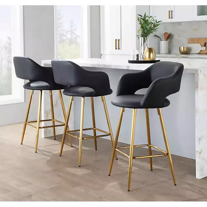 Upgrade your kitchen space with these Black Faux Leather Marge Counter Stools! These sleek stools feature sophisticated faux leather upholstery and contemporary silhouettes. They’re perfect for elevating your home!