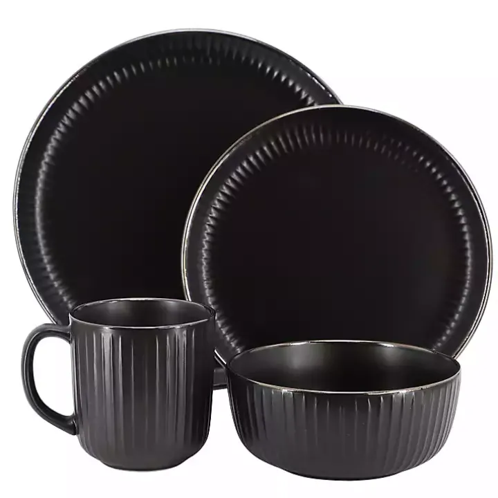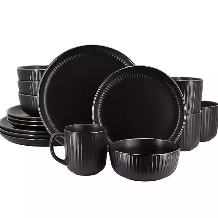 Make your dining experience feel sophisticated with this Black Leo Stoneware 16-pc. Dinnerware Set. Detailed with a sleek finish and subtle texture, this dinnerware boasts a contemporary yet timeless design that is perfect for any occasion.