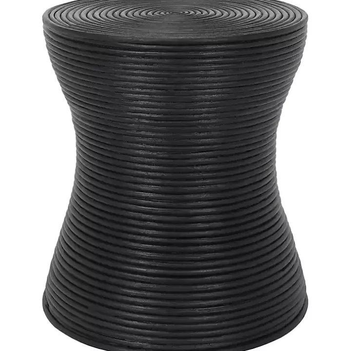 Bring modern design and unique texture to your space with this Black Ribbed Rattan Round Accent Table! You’ll love how the hourglass shape adds dimension to your living room.