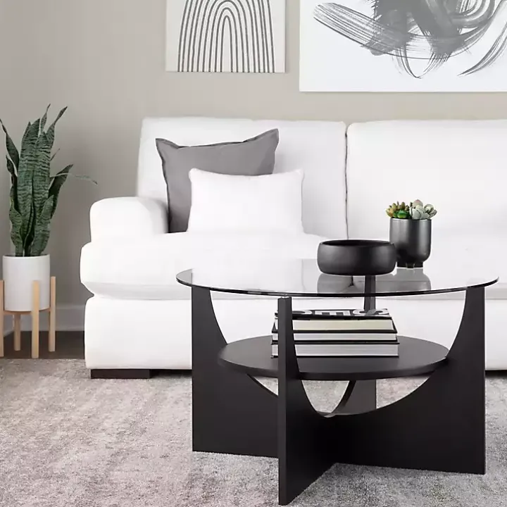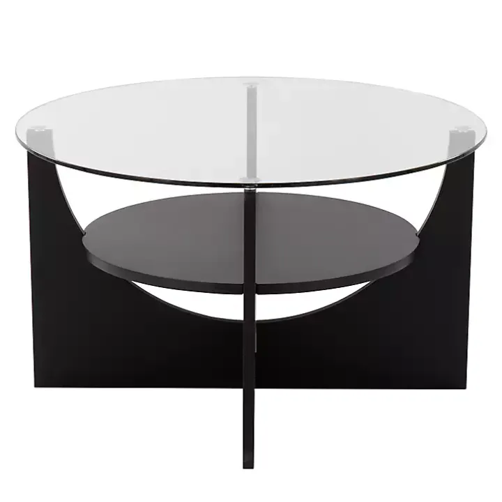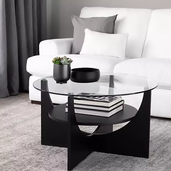Give your living room a modern look with our Black Round Glass Coffee Table! The unique overlapping U-shaped base and contemporary glass top will have you in love with your space!