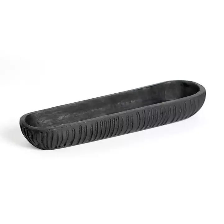 Accent your space with our Black Wood Carved Decorative Trough Bowl. This bowl is perfect for creating a custom centerpiece or refreshing your mantel with orbs or seasonal decor!