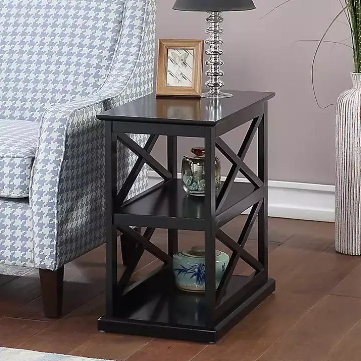 Upgrade your living room with this Black Wood Double X Sides Accent Table! With an eye-catching design and plenty of storage space, you’ll love styling this table to complement your space.