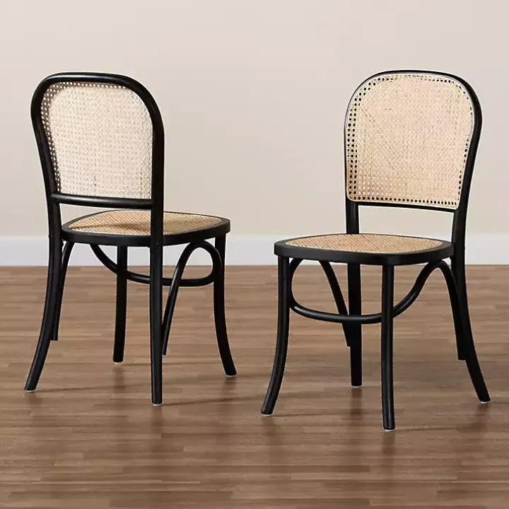Give your dining space a mid-century modern upgrade with these Black Wood & Rattan Bree Dining Chairs! You’ll love the contrast between the black wood and the natural rattan insets in your home.