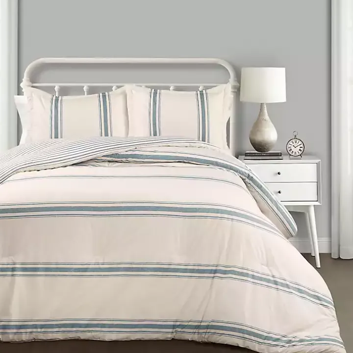 Snuggle into classic style with this beautiful three piece Blue Farmhouse Full/Queen Comforter Set. It will have you dreaming of shiplap all night long!