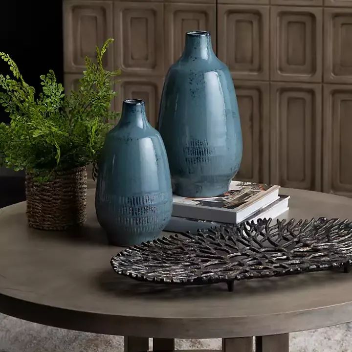 Bring a subtle rustic touch to your home with these Blue Glazed Ceramic Vases! The distressed blue hues give these vases an antique look, perfect for modern farmhouse spaces.