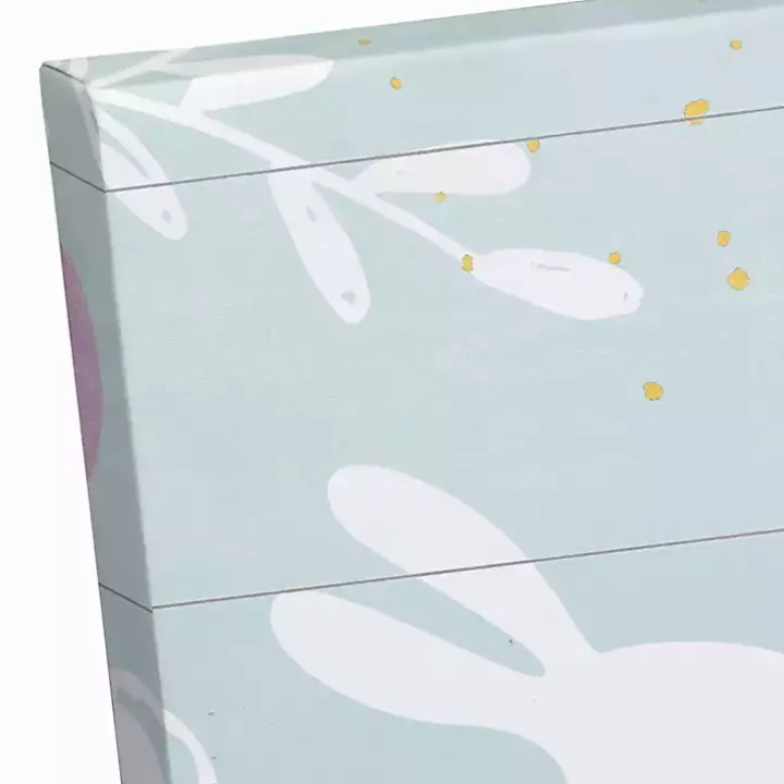 Usher a new season into your home with this Blue Hoppy Easter Canvas Wall Plaque. With pastel hues and bunny accents, this piece is perfect for spring!