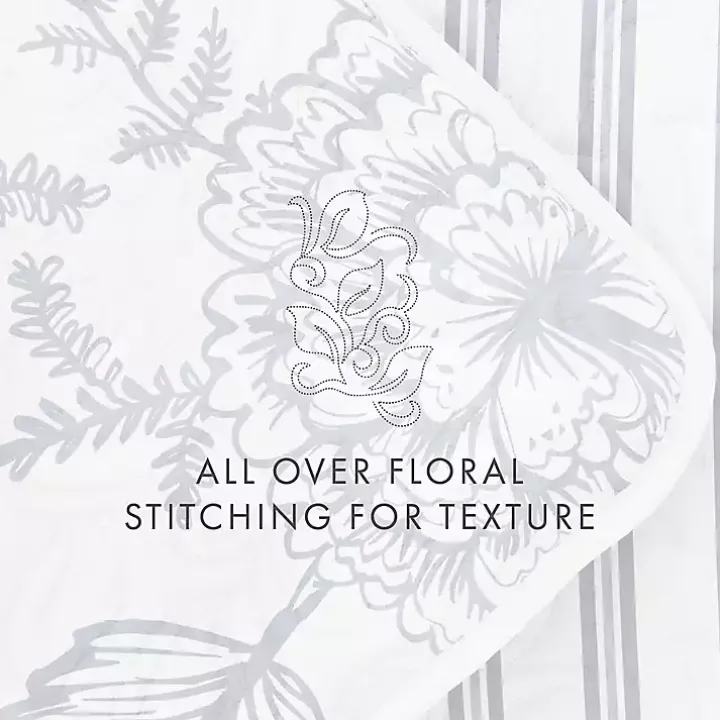 The Blue Jacobean Reversible 3-pc. Queen Quilt Set is crafted of a soft microfiber fabric and durable weave, making it perfect for any time of year. If you want to give your bed a simple, modern look, flip it over to reveal a striped pattern!
