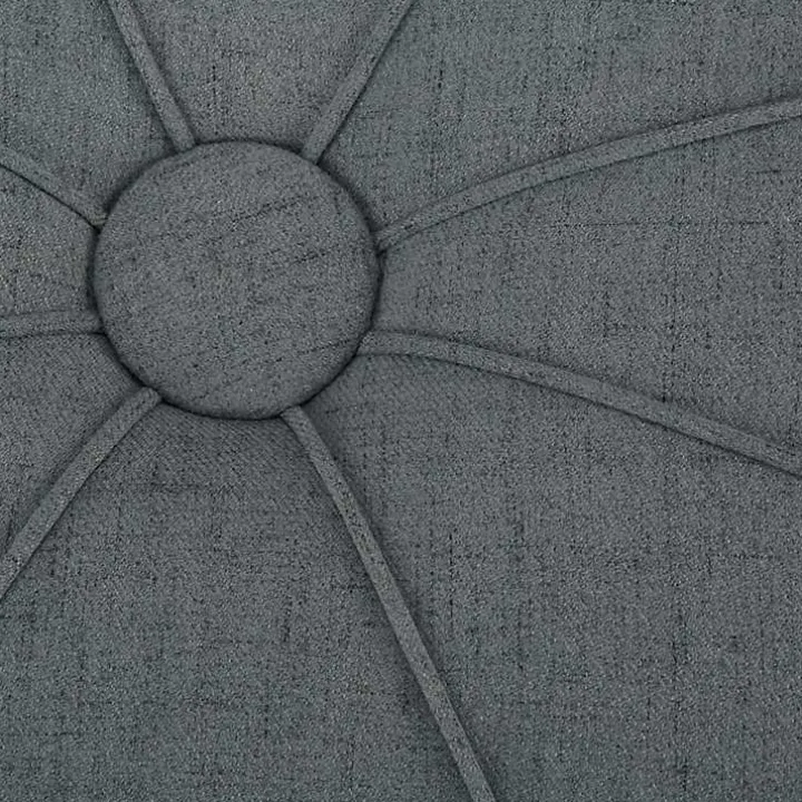 Blue Thick Welting Center Button Oval Ottoman