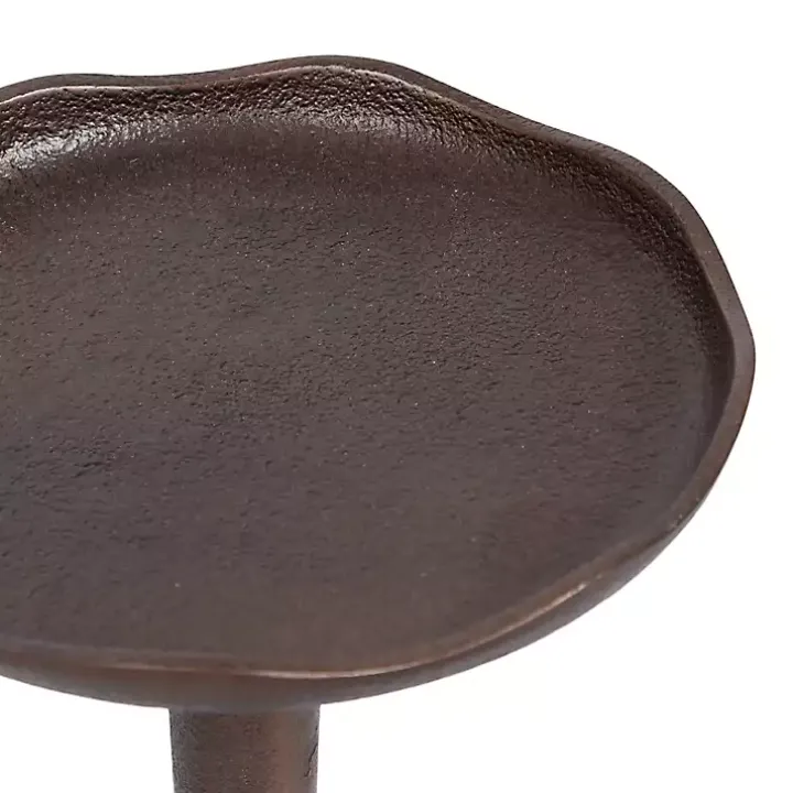 Decorate your home with the eye-catching beauty of this Bronze Metal Alicia Accent Table! Handcrafted in India, this round drink table is made with sandcast aluminum, giving it a distinct deckled edge and a rugged texture.