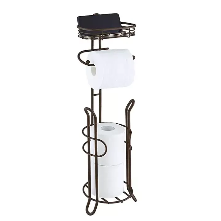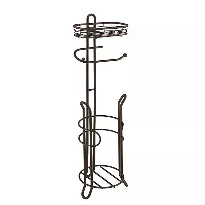 Bring convenience to your bathroom with this Bronze Toilet Paper Storage Stand with Basket. Its simple, modern design and dark finish will blend seamlessly with your decor!