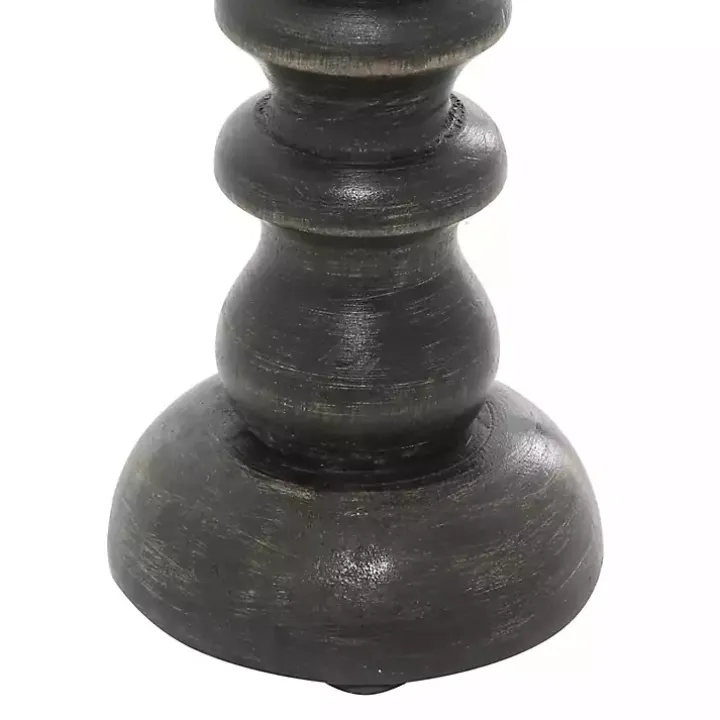 Light up your home with classic yet contemporary style using this set of Bronze Wood Column Candle Holders. Featuring layered body shapes and a semi shiny finish, this set brings a refined look to any tabletop.