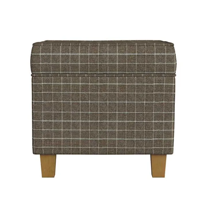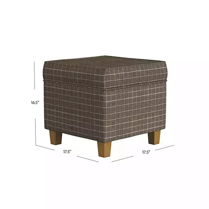 Brown Plaid Upholstered Square Storage Ottoman