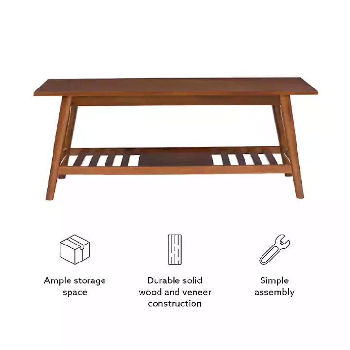 The Brown Wood Slatted Bottom Shelf Coffee Table is the perfect way to add midcentury modern flair to your living room. Display all your boardgames, books, and décor on this stunning piece!