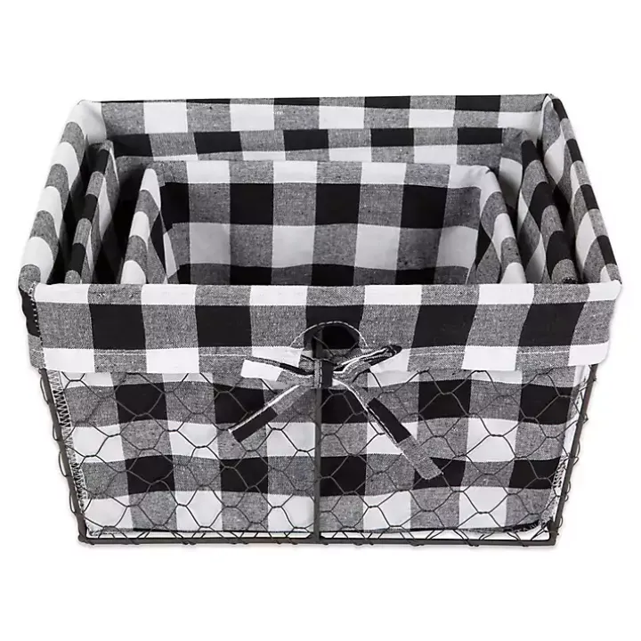 Store your fashion accessories in our vintage looking Chicken Wire and Buffalo Check Baskets. Its removable patterned lining adds a stylish design to your traditional farmhouse storage container.