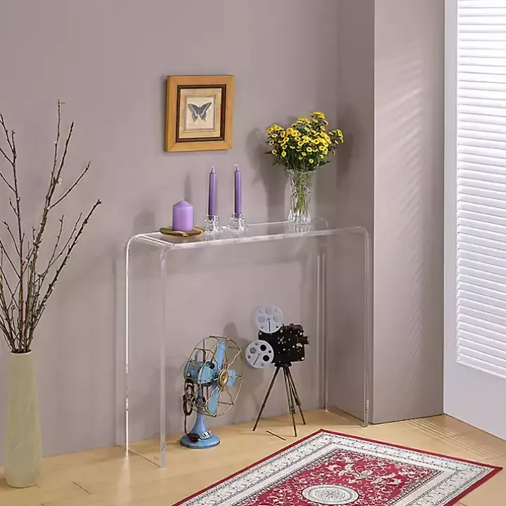 Refresh your entryway or living room with this Clear Acrylic Curved Edge Console Table! This modern console table features a clear finish and a waterfall edge design for a chic, stylish touch to your home.