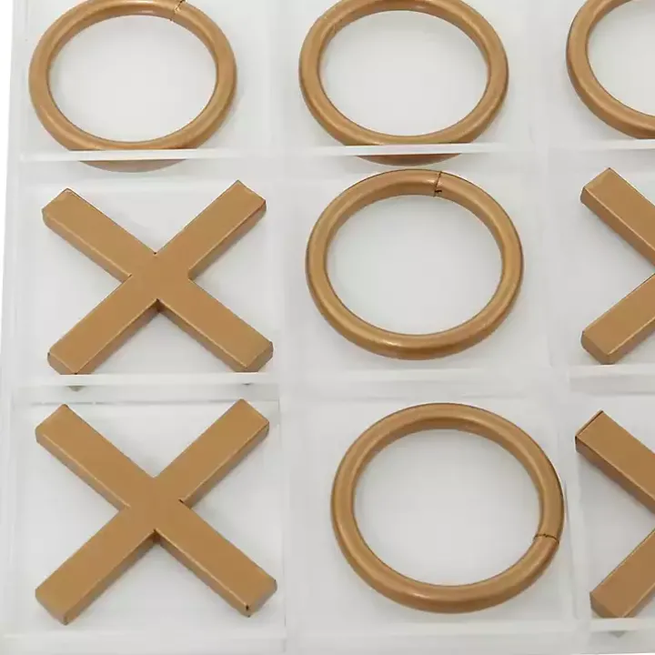 - Features five (5) “X” pieces and five (5) “O” gold metal pieces