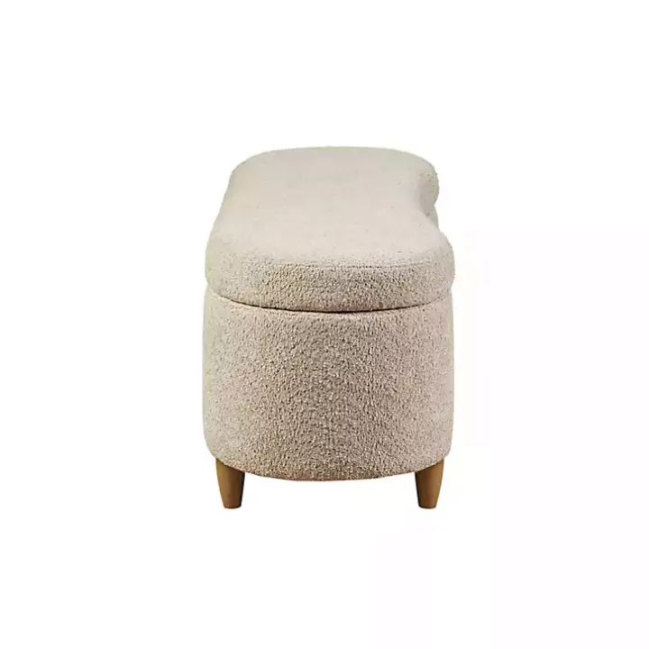 Introducing our Cream Boucle Flip-Top Storage Bench! This bench is a stylish and versatile piece that will fit seamlessly into any room of your home. Featuring clean lines and a curved front, you’ll love all the storage space!