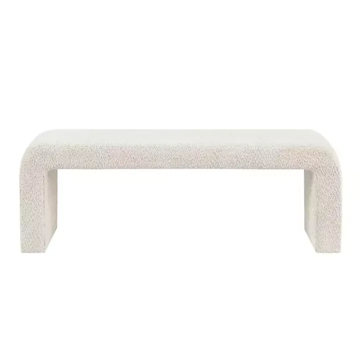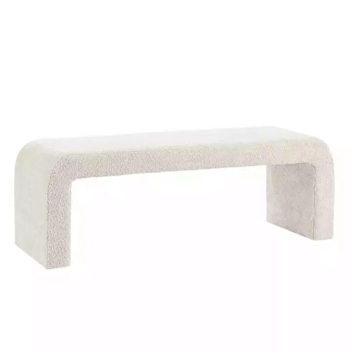 Our Cream Boucle Waterfall Bench features a sleek design with rounded corners in soft, boucle fabric. This cozy bench is the perfect addition to any modern home!