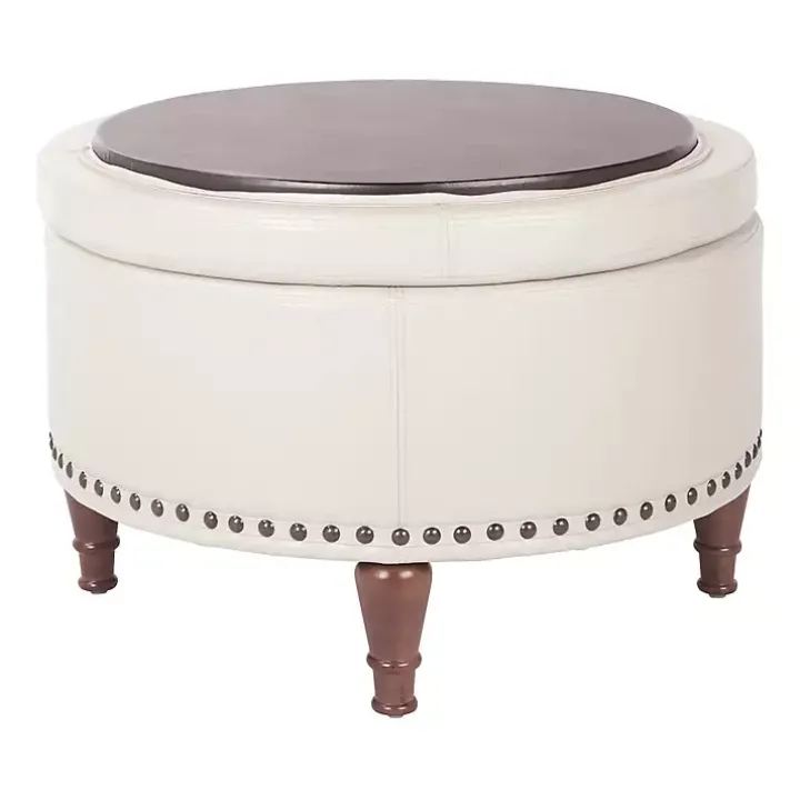 Add to your traditional home décor with our Cream Leather Antique Nailhead Storage Ottoman! This ottoman has antique nailhead accents and a beautiful cream upholstered finish. You’ll love how much storage this ottoman provides for extra blankets, pillows, or whatever your space needs!