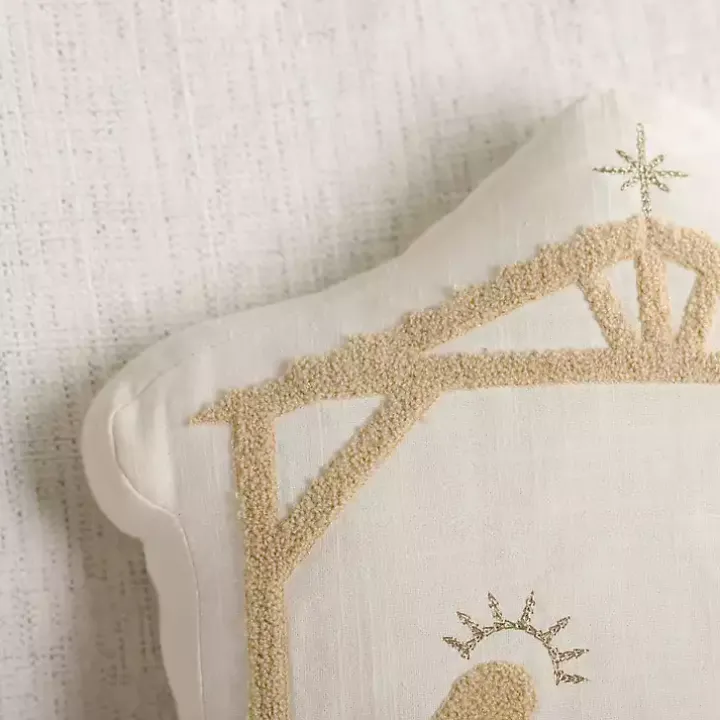 Make your home feel calm and cozy with our Cream Nativity Christmas Pillow! The holy nativity scene is made up of soft, embroidered textures and light, neutral hues.