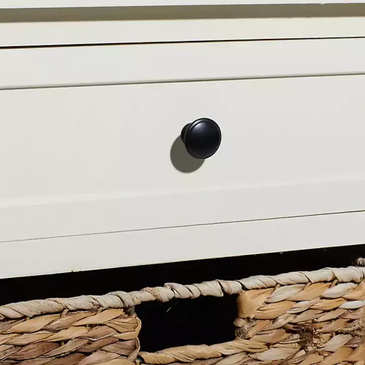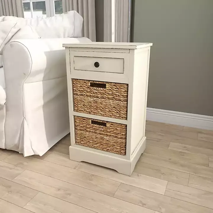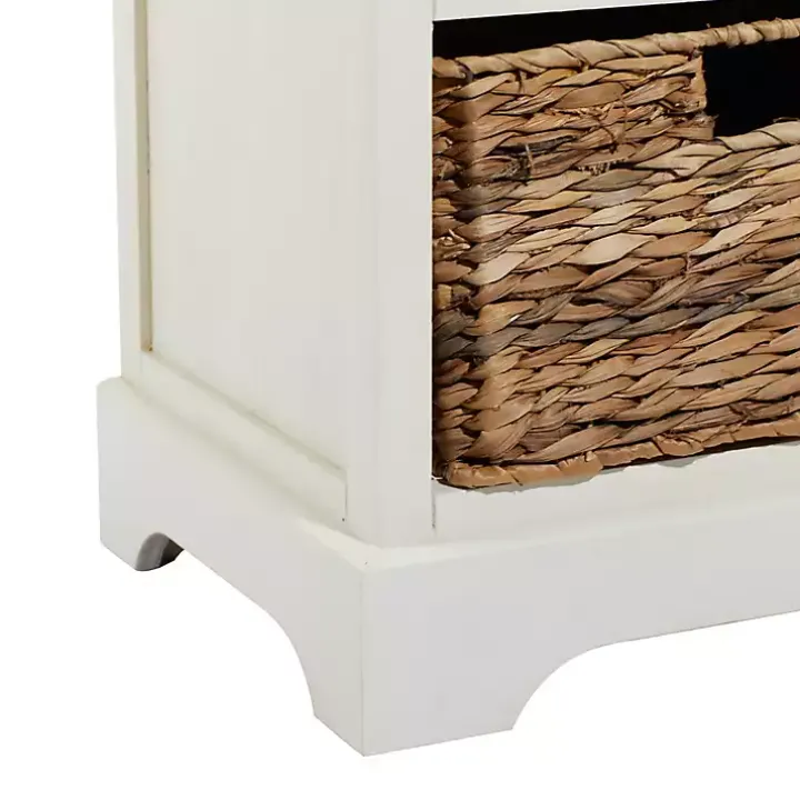 Cream Wood Side Table with Woven Baskets