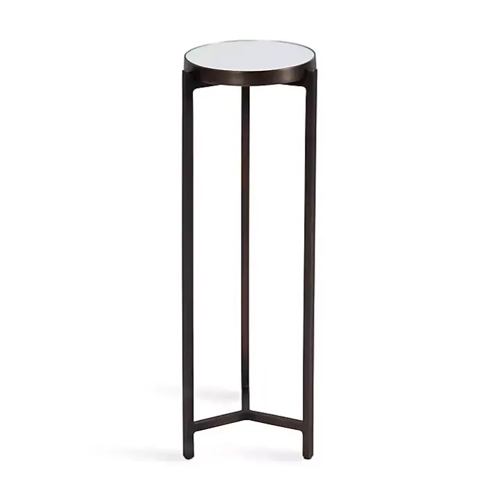 Inspired by modern design, this Dark Brown Mirrored Tabletop Aguilar Drink Table features a frame with clean, simple lines and a brushed bronze finish. This drink table is crafted with a unique mirrored tabletop and sturdy metal frame to serve as a quality, refined accent piece.