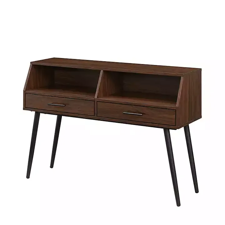Classic lines and timeless silhouettes come together to create the Dark Walnut 2-Drawer Henry Console Table. The open storage options are perfect for displaying home décor, while the closed storage offers a hideaway for keys and gadgets. This versatile entryway table will remain a staple as your taste for design evolves.