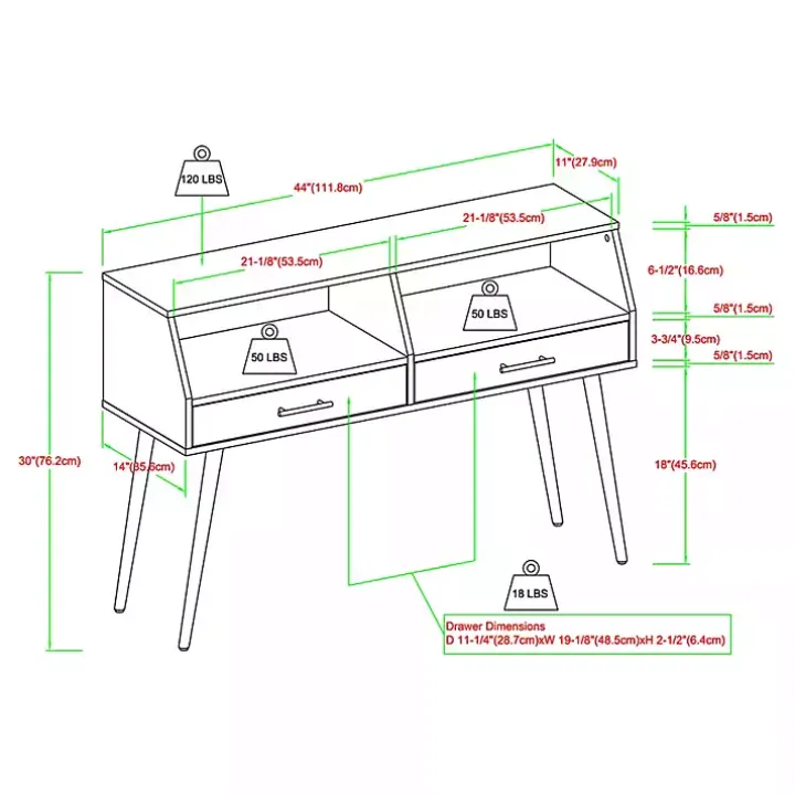 - Table measures 44L x 14W x 30H in.