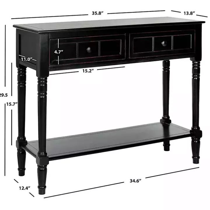 Create a charming entryway display with this Distressed Black Wood 2-Drawer Console Table. Featuring classic turned legs, it’s sure to incorporate a timeless element into your space.
