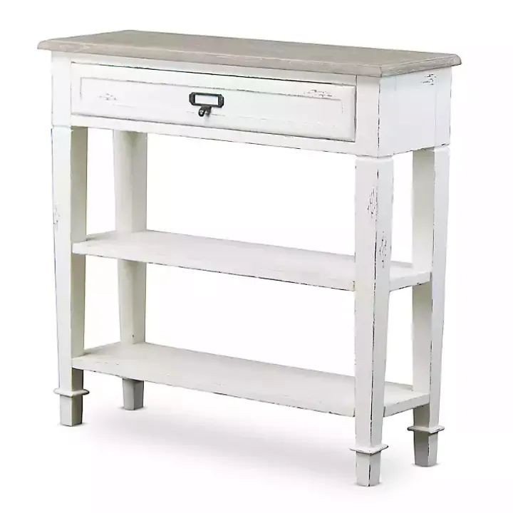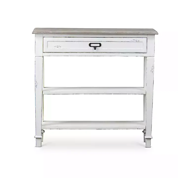 Bring some shabby chic charm to your space with our stunning Distressed White 1-Drawer Console Table. You’ll love the farmhouse flair that this table adds to your home.