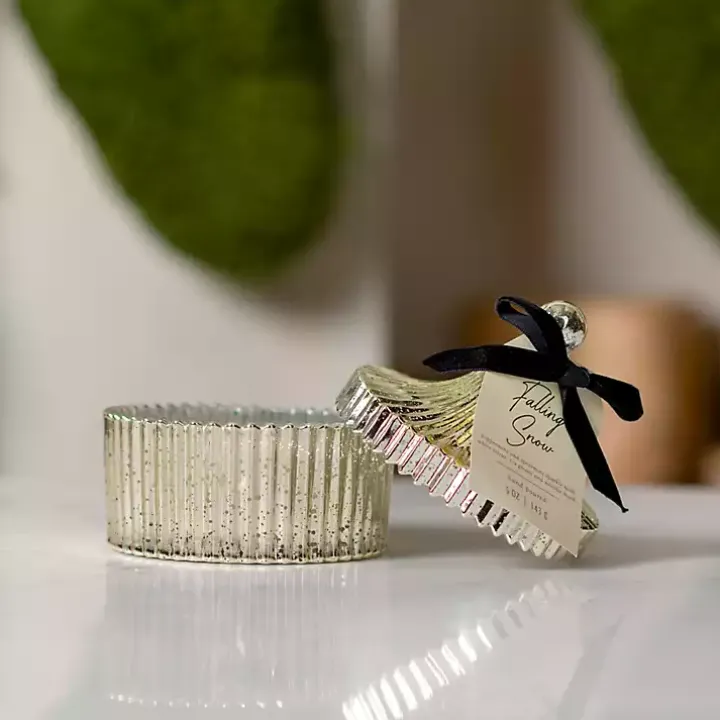 Mint and citrus notes create the revitalizing scent of our Falling Snow Gold Mercury Glass Jar Candle. Make your holiday gatherings feel fresh and inviting with this festive fragrance!