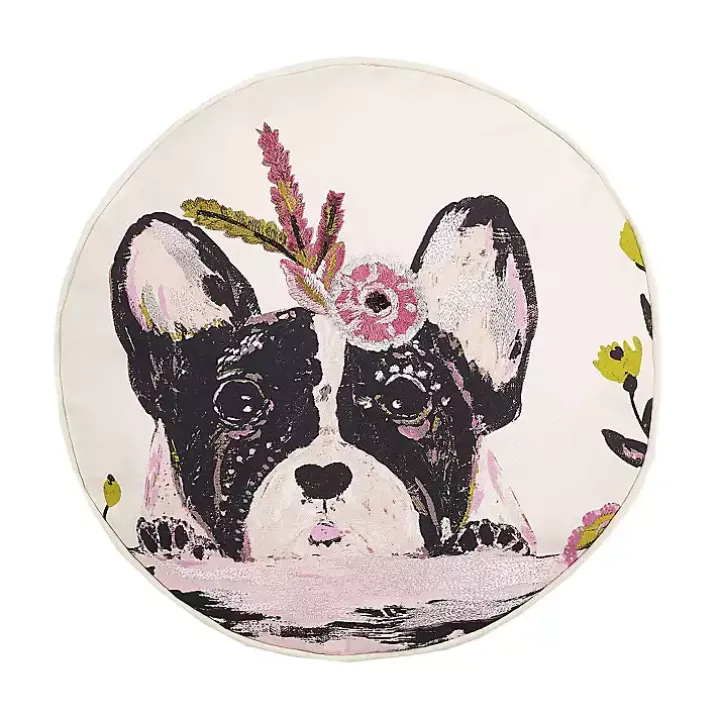 This Floral Frenchie Embroidered Round Pillow is perfect for any French Bulldog lover. The adorable Frenchie design and floral embroidery really make it pop.