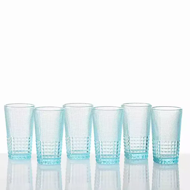 Add a retro look to your kitchen with the Fortessa Pool Blue Malcolm Tall Glass Set! Featuring a vintage-inspired style with graphic beading and vibrant color, you’ll love how this set livens up any occasion.