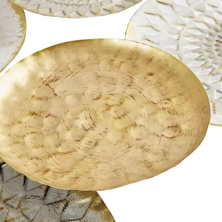 Our Gold Gray White Metal Connected Circle Wall Plaque looks wonderful in any space. You’ll love the eye-catching design of this metal wall plaque.