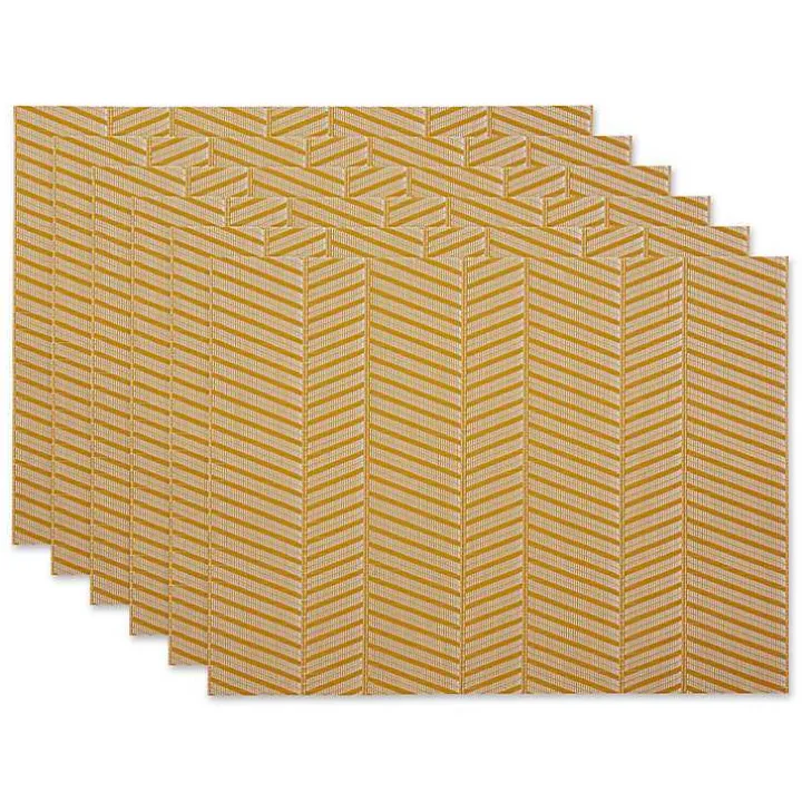 Give your dining table a dose of texture with this set of Gold Textured Twill Weave Placemats. Their raised, woven design adds a geometric look to any place setting.