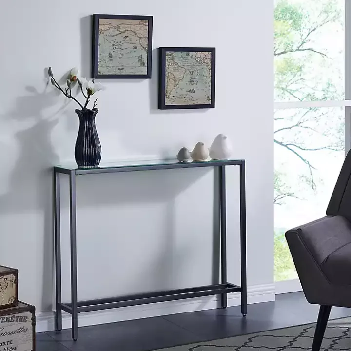 The minimal style of this Gray Metal Mirrored Top Slim Console Table is the perfect way to display photos, vases, and other decor! It will add a clean, modern look to your entryway or living room!