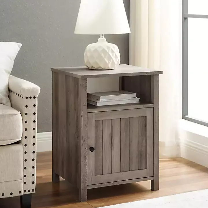 From coastal to farmhouse, this Gray Wash Grooved Door Side Table will work with just about any style. It will be perfect as a spacious end table by your sofa or bed.