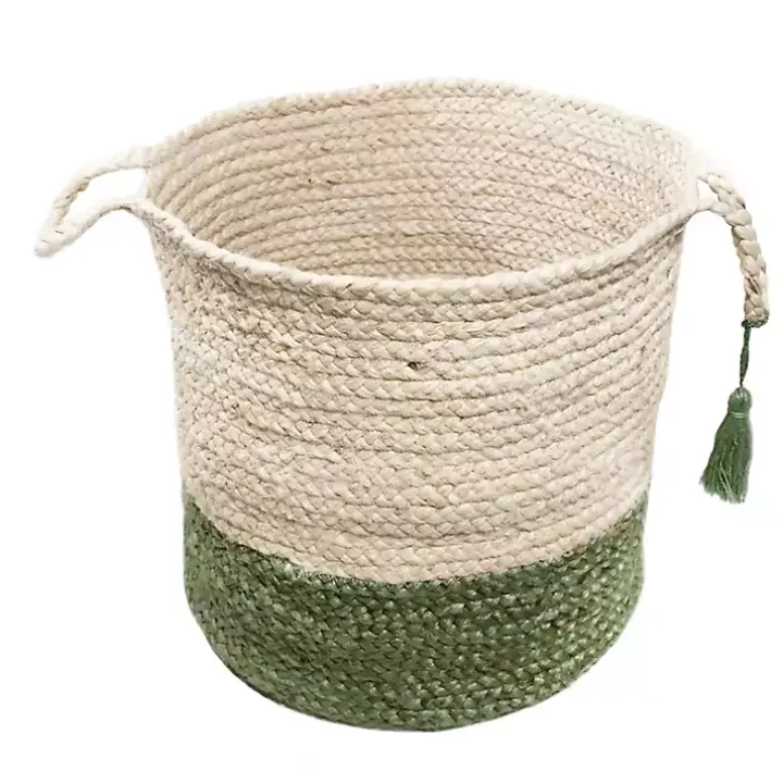Store those random blankets, toys, or shoes in our Green and Cream Woven Basket with Tassel! You’ll love the woven texture and decorative tassel on this basket.