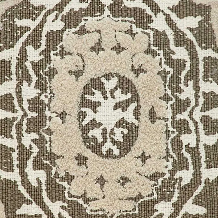 Embellish your sofa or bed design of this Green and Tan Medallion Fringe Pillow. Its ornate design and textured accents bring a timeless touch to any space!